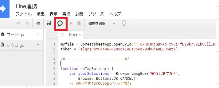 これのmyFunctionを実行されるとLINEに投稿されます。
