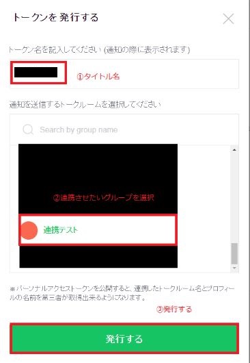 • トークンのタイトルを入力し、連携させたいグループを選択します。